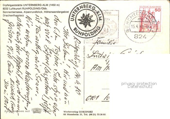 72375728 alte Postkarte Ruhpolding Bayern Gipfelgaststaette Unterberg Alm postalisch gelaufen Erhaltung siehe scans KatCode: 11110009189140