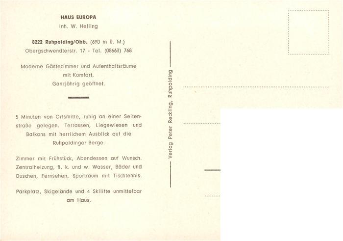 73886871 Ruhpolding Bayern Haus Europa postalisch nicht gelaufen Erhaltung siehe scans [WerneD78] Wern Katcode 11110009189140