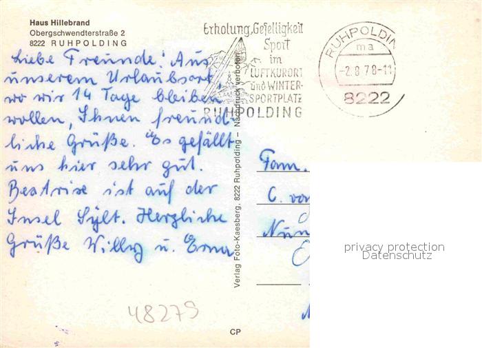 72860886 alte Postkarte Ruhpolding Bayern Haus Hillebrand postalisch gelaufen Erhaltung siehe scans [AndreD76] KatCode: 11110009189140
