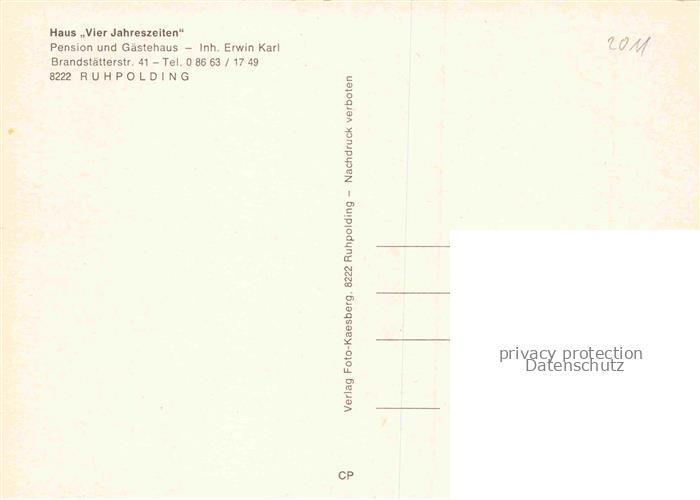 74084810 Ruhpolding Bayern Haus Vier Jahreszeiten postalisch nicht gelaufen Erhaltung siehe scans [WerneD78] KatCode: 11110009189140