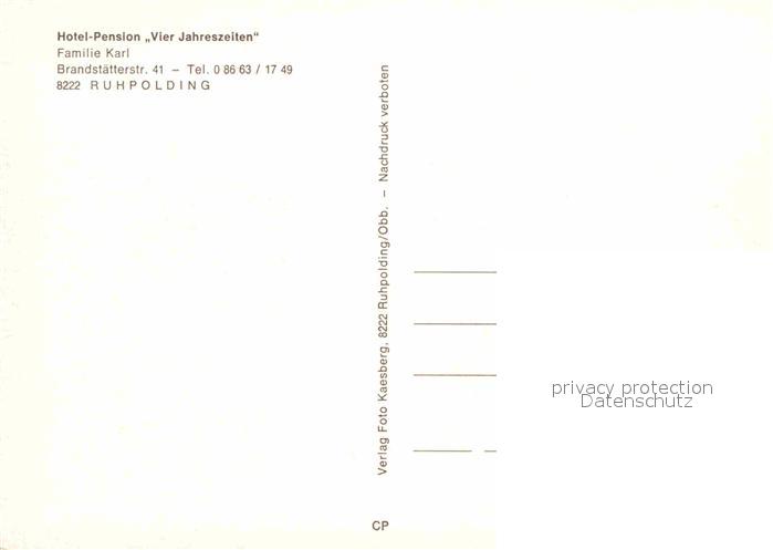 72694391 Ruhpolding Bayern Hotel Pension Vier Jahreszeiten Winter postalisch nicht gelaufen Erhaltung siehe scans [KathaD79] KatCode: 11110009189140