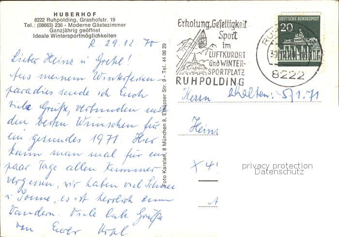 72480635 alte Postkarte Ruhpolding Bayern Huberhof postalisch gelaufen Erhaltung siehe scans KatCode: 11110009189140