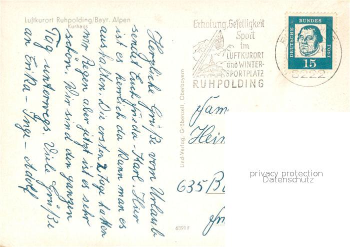 73655180 Ruhpolding Bayern Kurhaus Pferdewagen Luftkurort Alpen postalisch gelaufen Erhaltung siehe scans [FriedD77] alte Postkarte Frie Katcode 11110009189140