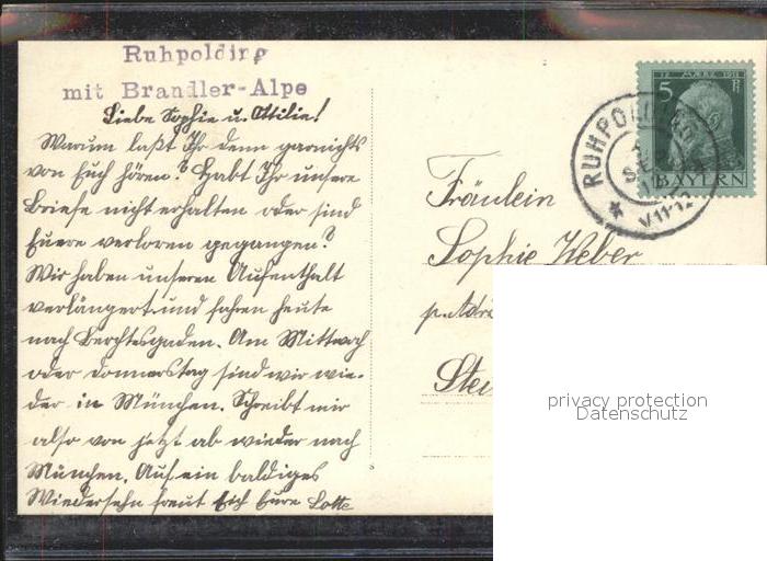 72142408 alte Postkarte Ruhpolding Bayern mit Brandler Alpe postalisch gelaufen Erhaltung siehe scans KatCode: 11110009189140