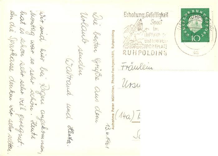 73863873 Ruhpolding Bayern Ortsansicht mit Kirche postalisch gelaufen Erhaltung siehe scans [FriedD77] alte Postkarte Frie Katcode 11110009189140