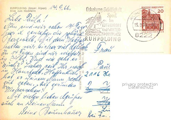 72791775 alte Postkarte Ruhpolding Bayern Panorama Blick zum Hochfelln Chiemgauer Alpen postalisch gelaufen Erhaltung siehe scans [FriedD77] KatCode: 11110009189140