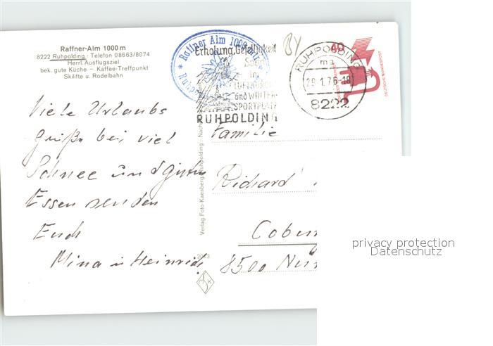 72037229 alte Postkarte Ruhpolding Bayern Raffner- Alm postalisch gelaufen Erhaltung siehe scans KatCode: 11110009189140