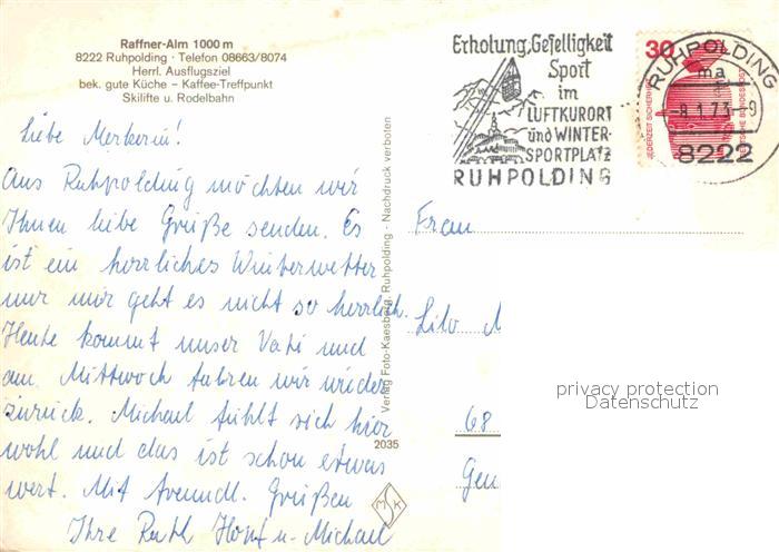 72764294 alte Postkarte Ruhpolding Bayern Raffner-Alm postalisch gelaufen Erhaltung siehe scans [LiesaD40] KatCode: 11110009189140