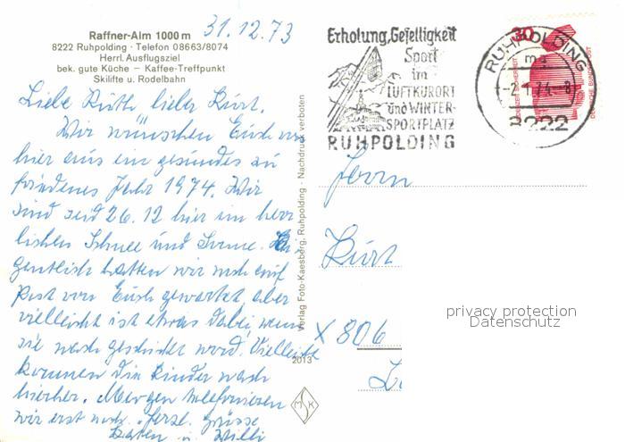 72631737 alte Postkarte Ruhpolding Bayern Raffner Alm postalisch gelaufen Erhaltung siehe scans [LiesaD40] KatCode: 11110009189140