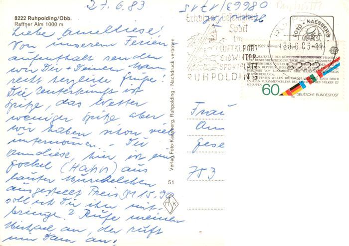 73932134 Ruhpolding Bayern Raffner Alm Gastwirtschaft postalisch gelaufen Erhaltung siehe scans [FriedD77] alte Postkarte Frie Katcode 11110009189140