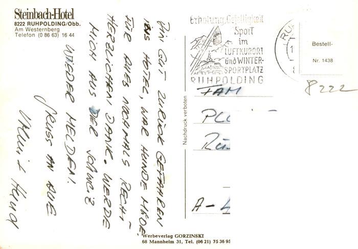 73919668 Ruhpolding Bayern Steinbach Hotel Gaststube Hallenbad Panorama postalisch gelaufen Erhaltung siehe scans [FriedD77] alte Postkarte Frie Katcode 11110009189140