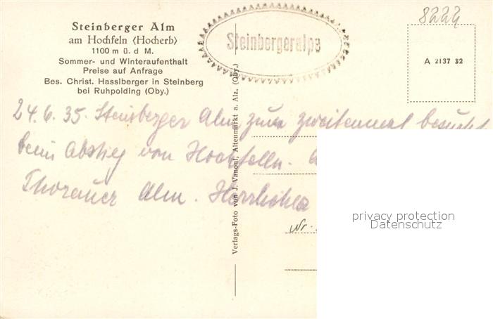 42964137 Ruhpolding Bayern Steinberger Alm postalisch nicht gelaufen Erhaltung siehe scans [AndreD76] Andr Katcode 11110009189140