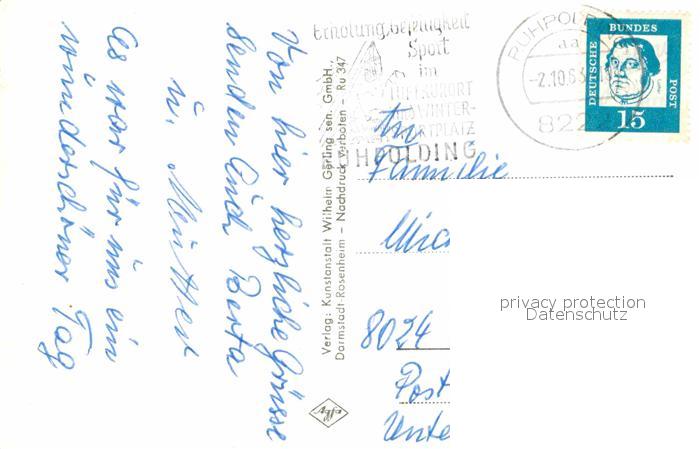 72693053 alte Postkarte Ruhpolding Bayern Talblick Rauschberg Gipfel Berghotel Bergbahn Restaurant Taubensee postalisch gelaufen Erhaltung siehe scans [FriedD77] KatCode: 11110009189140