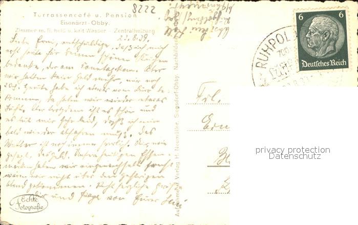 71676622 alte Postkarte Ruhpolding Bayern Terrassencafe-Pension Eisenaerzt postalisch gelaufen Erhaltung siehe scans KatCode: 11110009189140