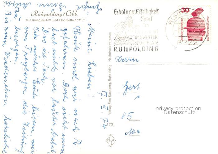 73198226 alte Postkarte Ruhpolding Brandler Alm Hochfelln postalisch gelaufen Erhaltung siehe scans [KathaD81] KatCode: 11110009189140