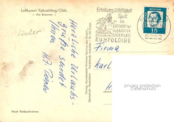 73071182 alte Postkarte Ruhpolding Brunnen postalisch gelaufen Erhaltung siehe scans [NatalD47] KatCode: 11110009189140