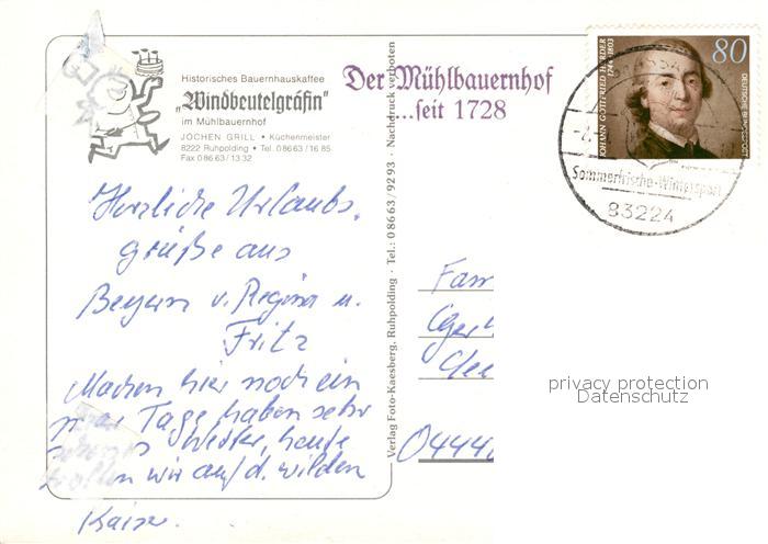 73081063 alte Postkarte Ruhpolding Cafe Windbeutelgraefin Muehlbauernhof postalisch gelaufen Erhaltung siehe scans [FriedD77] KatCode: 11110009189140