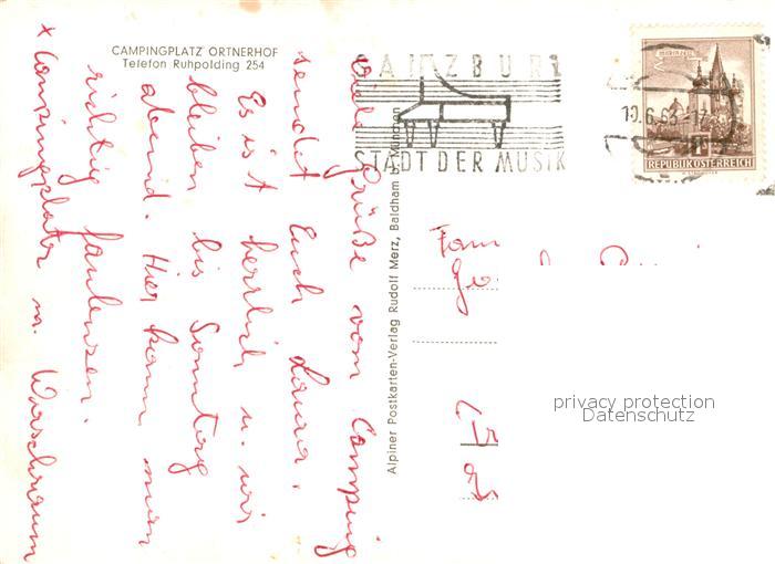 72986380 alte Postkarte Ruhpolding Campingplatz Ortnerhof Hirsch Alpenpanorama Edelweiss postalisch gelaufen Erhaltung siehe scans [FriedD77] KatCode: 11110009189140