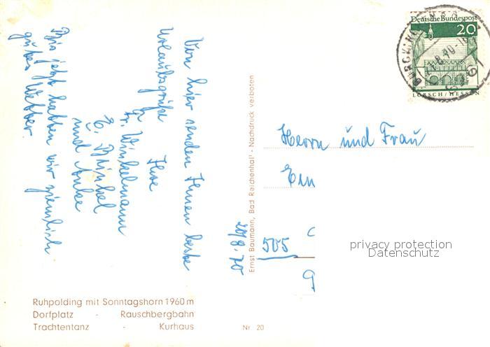 72984183 alte Postkarte Ruhpolding Dorfpatz Trachtentanz Rauschbergbahn Kurhaus postalisch gelaufen Erhaltung siehe scans [WerneD78] KatCode: 11110009189140