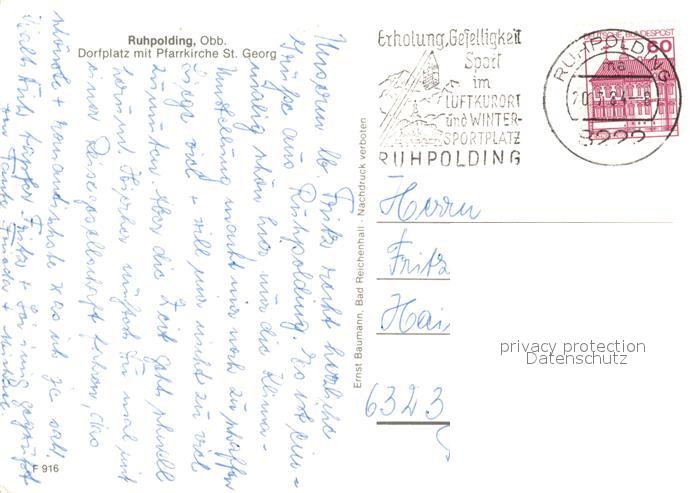 73152021 alte Postkarte Ruhpolding Dorfplatz Pfarrkirche Sankt Georg postalisch gelaufen Erhaltung siehe scans [KathaD81] KatCode: 11110009189140