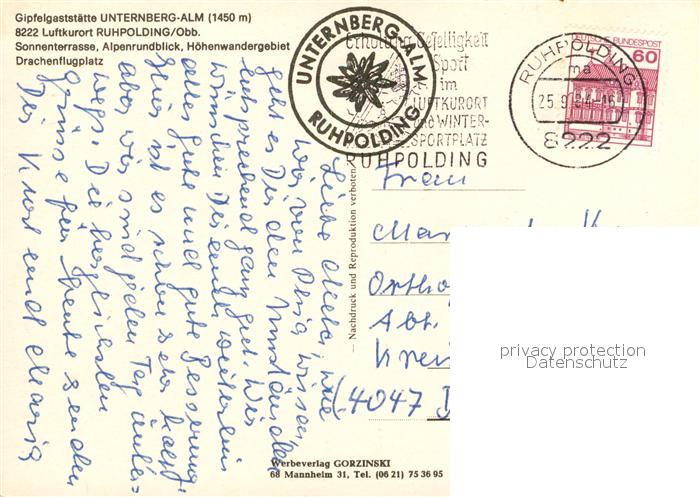 73025585 alte Postkarte Ruhpolding Gipfelgaststaette Unternberg Alm postalisch gelaufen Erhaltung siehe scans [KathaD81] KatCode: 11110009189140
