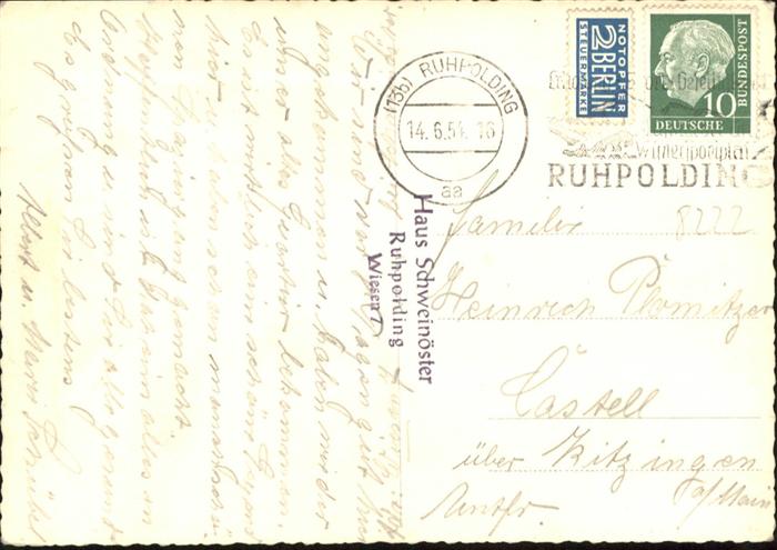 70941467 alte Postkarte Ruhpolding Haus Schweinoester postalisch gelaufen KatCode: 11110009189140