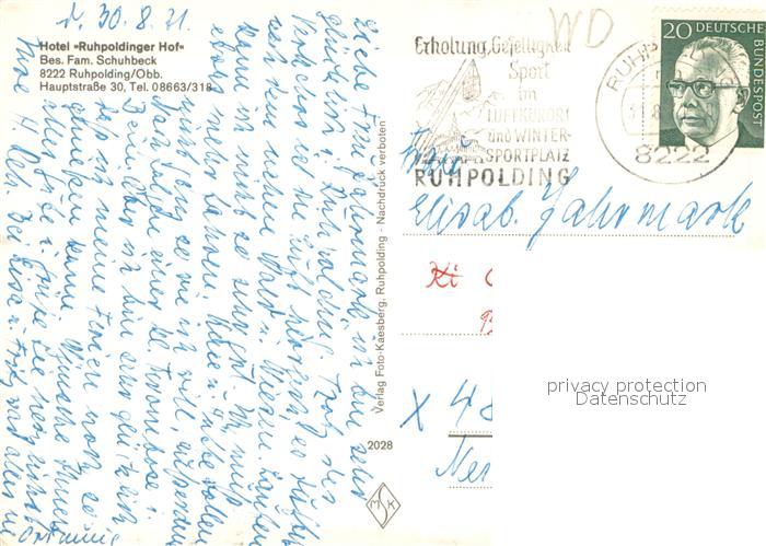 73662541 alte Postkarte Ruhpolding Hotel Ruhpoldinger Hof Maibaum postalisch gelaufen Erhaltung siehe scans [FriedD77] KatCode: 11110009189140