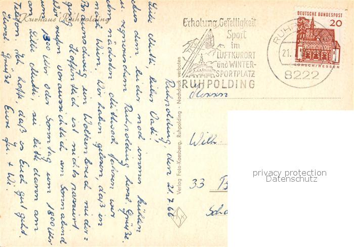 73335485 alte Postkarte Ruhpolding Kurhaus Terrasse postalisch gelaufen Erhaltung siehe scans [FriedD77] KatCode: 11110009189140