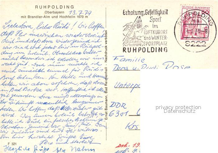 73249845 alte Postkarte Ruhpolding mit Brandner Alm und Hochfelln postalisch gelaufen Erhaltung siehe scans [WerneD78] KatCode: 11110009189140