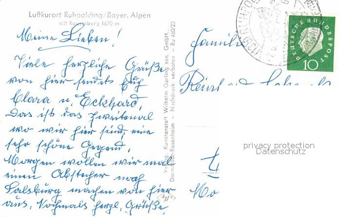 72912472 alte Postkarte Ruhpolding mit Rauschberg postalisch gelaufen Erhaltung siehe scans [WerneD78] KatCode: 11110009189140
