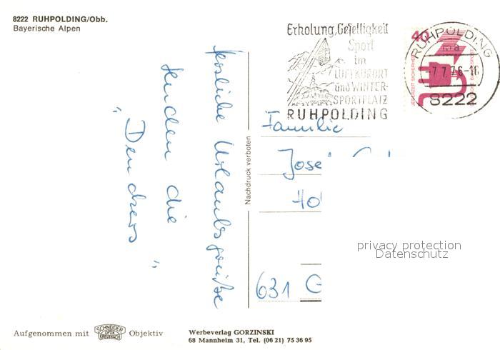 73227025 alte Postkarte Ruhpolding Panorama Bayerische Alpen Hauptstrasse Schwimmhalle postalisch gelaufen Erhaltung siehe scans [FriedD77] KatCode: 11110009189140