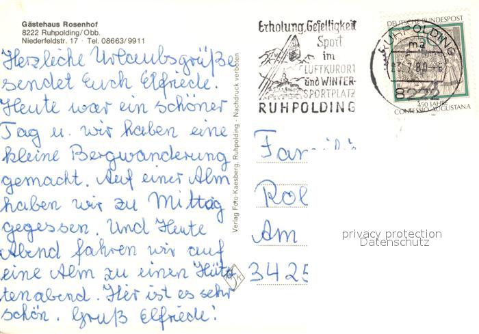 73066578 alte Postkarte Ruhpolding Panorama Gaestehaus Rosenhof Garten postalisch gelaufen Erhaltung siehe scans [WerneD78] KatCode: 11110009189140