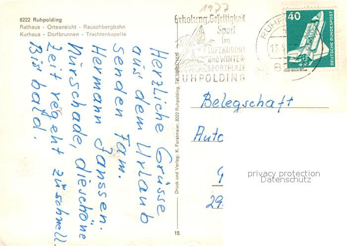 72925590 alte Postkarte Ruhpolding Rathaus Rauschbergbahn Kurhaus postalisch gelaufen Erhaltung siehe scans [NatalD47] KatCode: 11110009189140