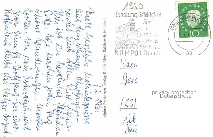 72897528 alte Postkarte Ruhpolding Rauschberg Seilbahn Rauschberghaus Hoerndlwand postalisch gelaufen Erhaltung siehe scans [PaolaD17] KatCode: 11110009189140