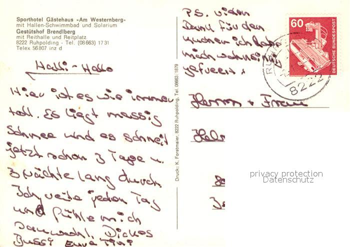 73609004 alte Postkarte Ruhpolding Sporthotel Gaestehaus Am Westernberg postalisch gelaufen Erhaltung siehe scans [WerneD78] KatCode: 11110009189140