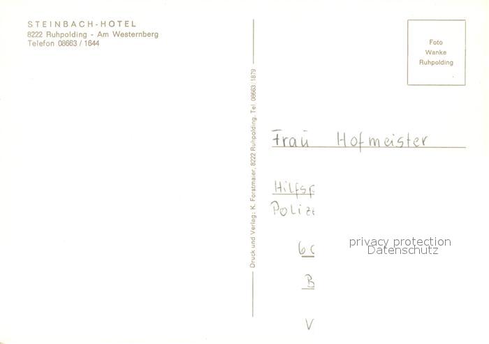 73040970 Ruhpolding Steinbach Hotel postalisch nicht gelaufen Erhaltung siehe scans [WerneD78] KatCode: 11110009189140