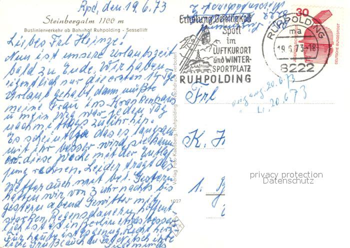 73596755 alte Postkarte Ruhpolding Steinbergalm mit Sessellift postalisch gelaufen Erhaltung siehe scans [WerneD78] KatCode: 11110009189140