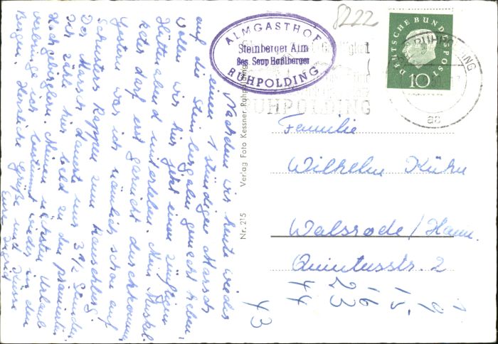 30726550 alte Postkarte Ruhpolding [Stempelabschlag] Steinberg Rauschberg postalisch gelaufen KatCode: 11110009189140