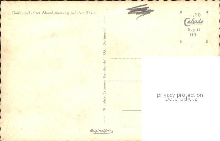 72061537 Ruhrort Abendstimmung auf dem Rhein Frachter postalisch nicht gelaufen Erhaltung siehe scans KatCode: 11110005112000