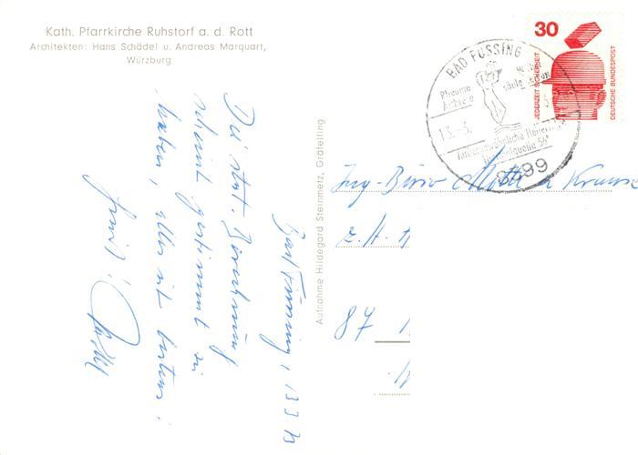 73879551 alte Postkarte Ruhstorf Rott Katholische Pfarrkirche Innenansicht Architekten Schaedel und Marquart postalisch gelaufen Erhaltung siehe scans [FriedD77] KatCode: 11110009275145