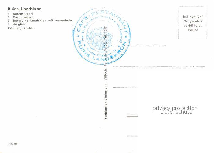 12719745 Ruine Landskron Baerenstueberl Ossiachersee Annenheim Burgbar postalisch nicht gelaufen Erhaltung siehe scans [LiesaD40] KatCode: 11170068468182