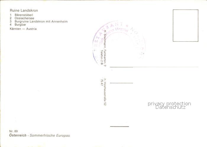12486320 Ruine Landskron Baerenstueberl Ossiachersee Burgruine Burgbar postalisch nicht gelaufen Erhaltung siehe scans KatCode: 11170068468182
