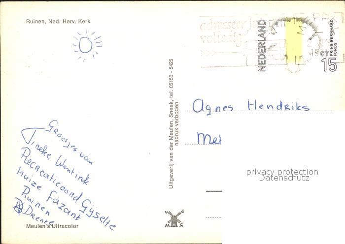 old postcard Ruinen Ned Herv Kerk postalisch gelaufen