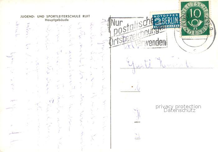 73749712 alte Postkarte Ruit Bretten Jugend und Sportleiterschule Ruit Hauptgebaeude postalisch gelaufen Erhaltung siehe scans [WerneD78] KatCode: 11110008215007