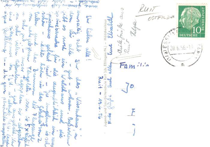 73908104 alte Postkarte Ruit Ostfildern Maedchenhaus postalisch gelaufen Erhaltung siehe scans [WerneD78] KatCode: 11110008116080