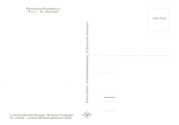 73887054 Ruit Ostfildern Paracelsus Krankenhaus Fliegeraufnahme postalisch nicht gelaufen Erhaltung siehe scans [FriedD77] KatCode: 11110008116080