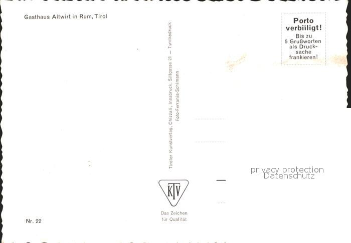 11923571 Rum Tirol Gasthaus Altwirt postalisch nicht gelaufen Erhaltung siehe scans KatCode: 11390332070346