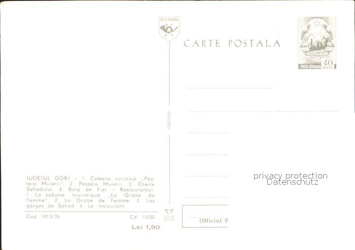 Rumaenien Grotte de Femme Judetul Gorj Cabana turistica Pestera Muierii postalisch nicht gelaufen Ganzsache (eingedruckte Briefmarke) Erhaltung siehe scans