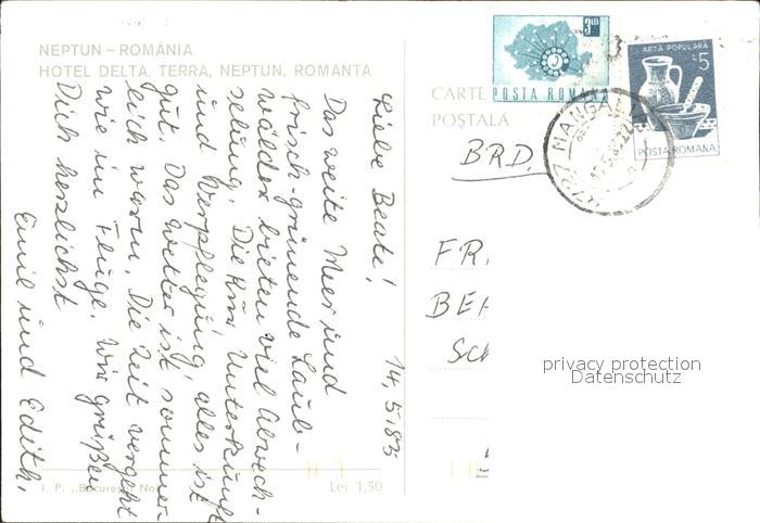 old postcard Rumaenien Hotel Delta Terra Neptun postalisch gelaufen Erhaltung siehe scans