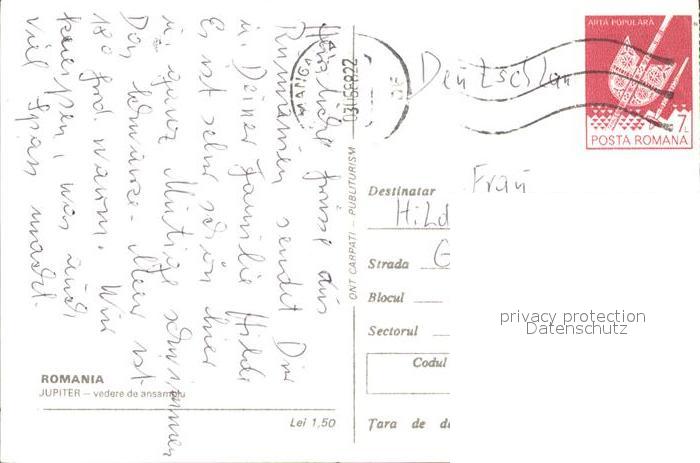old postcard Rumaenien Jupiter Hotel postalisch gelaufen Erhaltung siehe scans